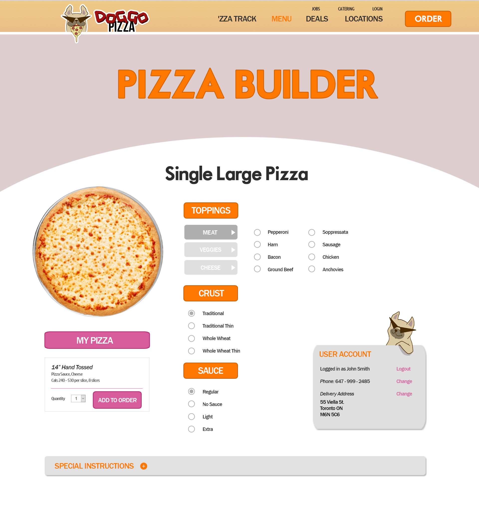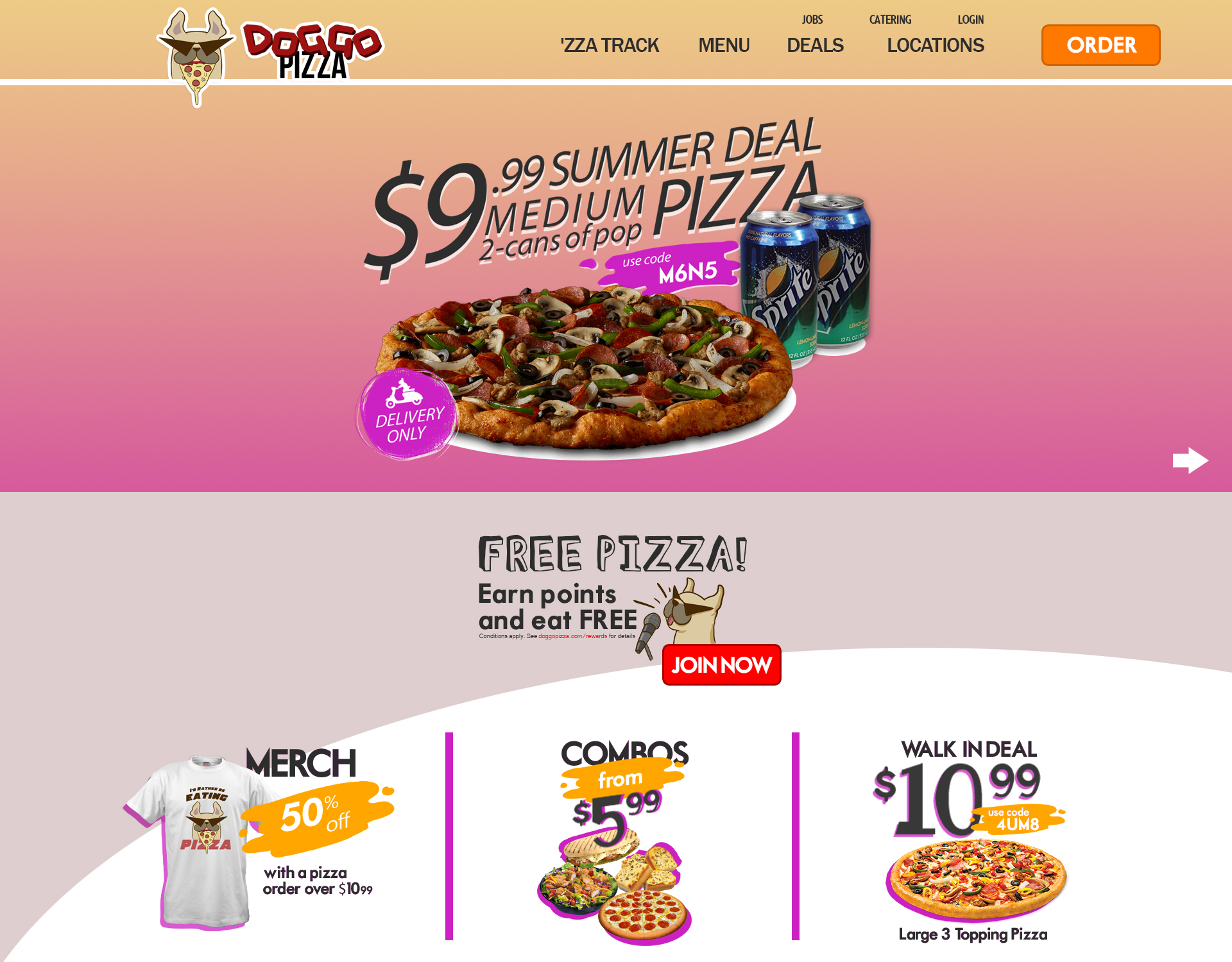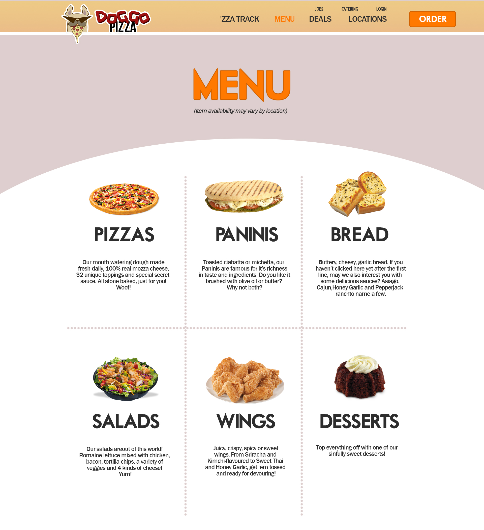 My dog, however, is self-aware of its goofy appearance, sporting comical bat-wing shades, and serves as a character that represents the consumer. A doggie that can’t keep his paws off of Doggo’s Pizza.